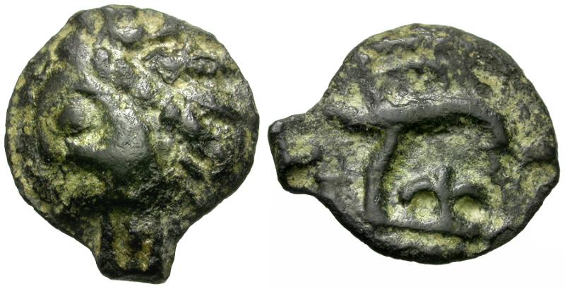 Obverse: Stylized head left with large eye, neck and three strands of hair