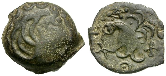» Lot Info: Ancient France. Celtic Gaul. Senones Tribe Æ14 / Bird & Pentagram