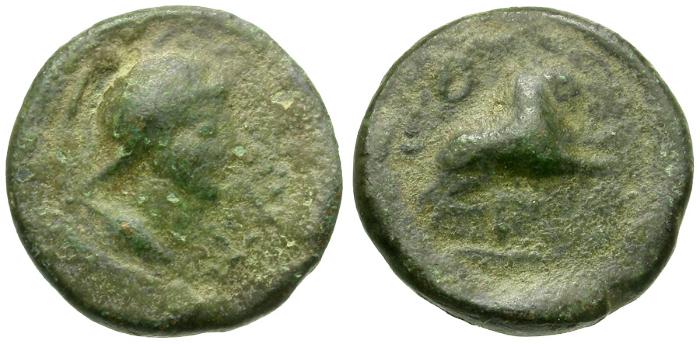 Description: VF. An interesting cast bronze copied from the earlier struck Greek issues.