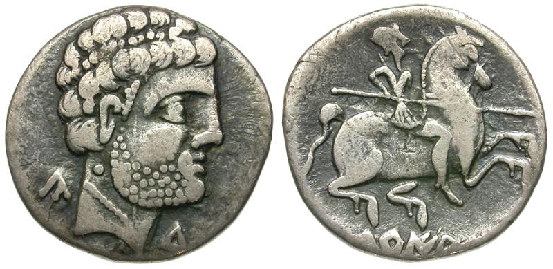 Reverse: Warrior holding spear on horse galloping right; TURIASU in Iberian below