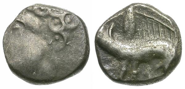 Description: VF with scarcer boar reverse. Struck on a small, thick flan.