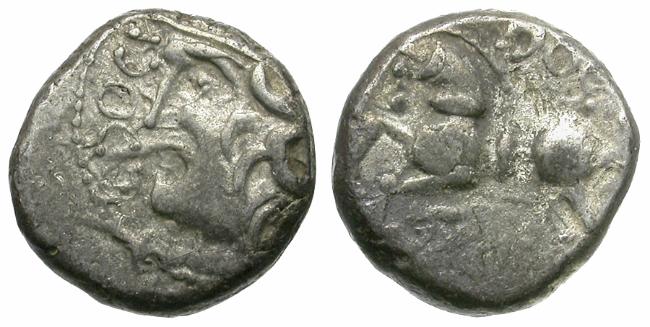Obverse: [Q]•DOCI, Celticized head of Roma left