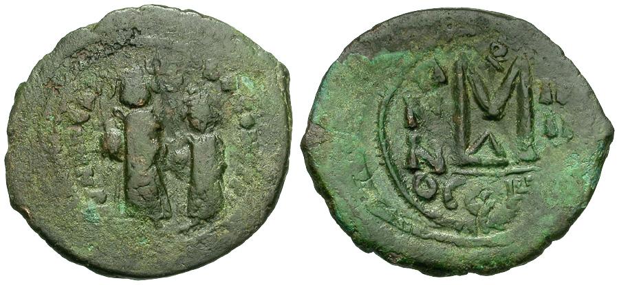 Obverse: Facing crowned figures of Heraclius, on left, and Heraclius Constantine, smaller, on right
