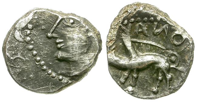 Obverse: Male head with curly hair left