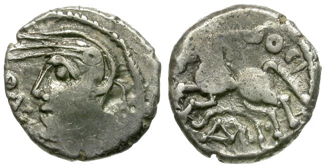 Obverse: Q•DO[CI], Celticized head of Roma left