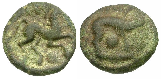 Obverse: Horse galloping right, annulet below