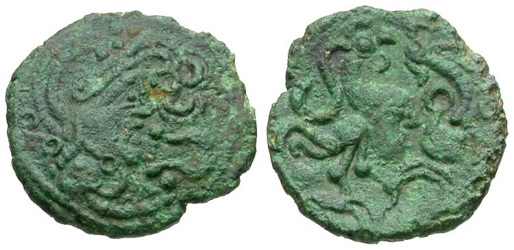 | Ancient France. Celtic Gaul. Bellovaci Tribe Æ18 / Man-headed Rooster |