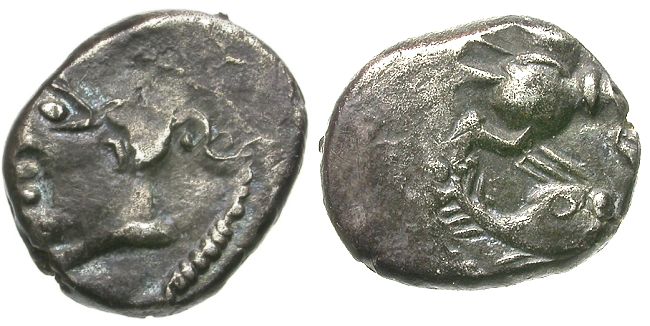 Ancient France. Celtic Gaul. Leuci Tribe AR Quinarius / Fish |
