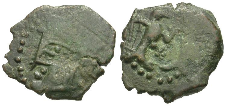 Obverse: Stylized Celtic head left with pointed nose and angular chin