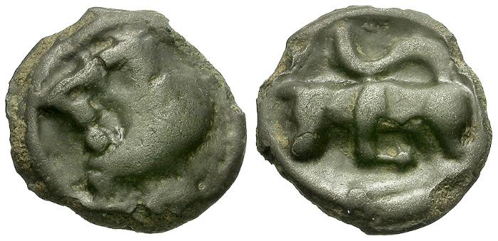 | Ancient France. Celtic Gaul. Turones Tribe Potin / Bull |