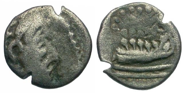 Reverse: Phoenician galley right, waves below