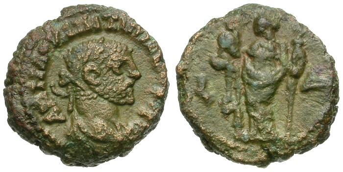 Reverse: Alexandria left holding scepter and head of Serapis, L-Δ (date) across fields