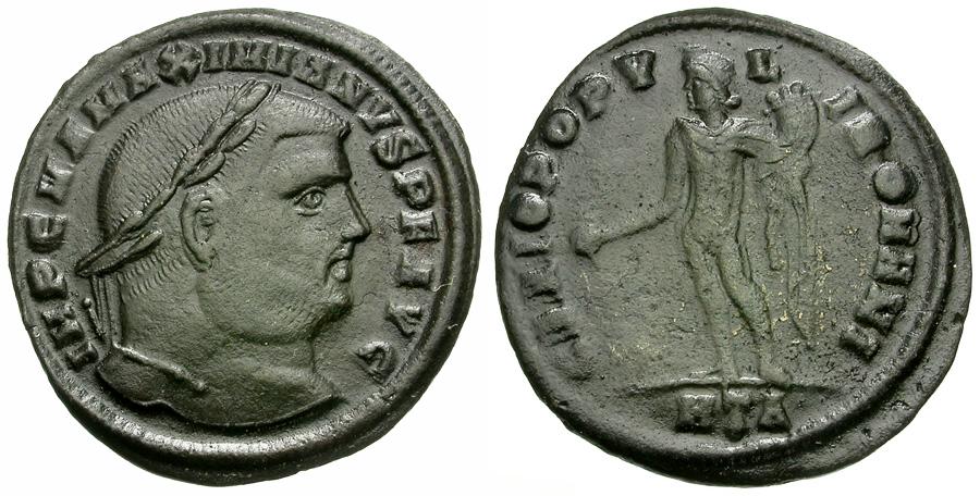 Obverse: IMP C M A MAXIMIANVS P F AVG, laureate head right