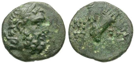 Attribution: HGC 7, 257 Date: 85-65 BC Obverse: Head of Herakles right Reverse: AMI-ΣOY, club and quiver; monogram in lower left field Size: 12.16mm Weight: 1.26 grams Rarity: 5 Description: XF