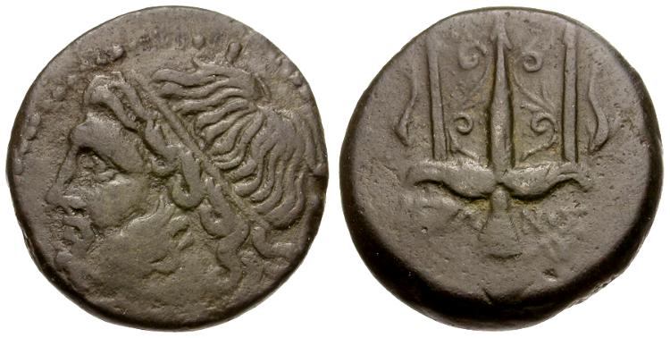 | Sicily. Syracuse. Hieron II (275-215 BC) Æ19 / Trident |