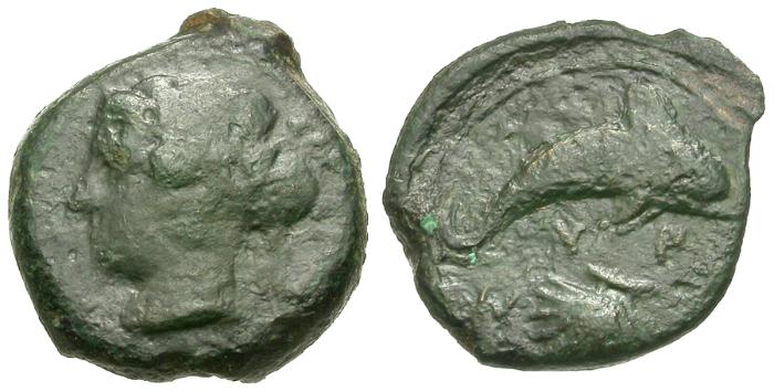 | Sicily. Syracuse Dionysios I (405-367 BC) Æ Hemilitron / Dolphin |