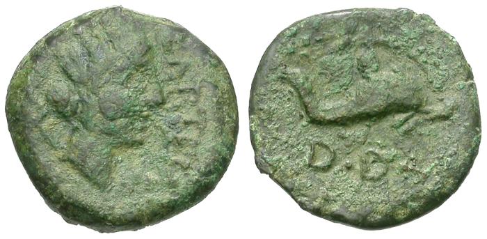 | Spain. Iberia. Carteia Æ Quadrans / Cupid Riding Dolphin |