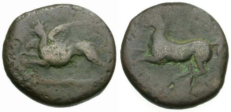 | Sicily. Syracuse. Dionysos II (375-344 BC) Æ19 / Griffin |