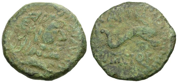 Reverse: CARTEIA, dolphin swimming right, C MINI Q F below