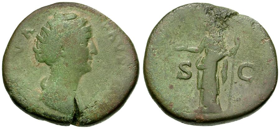 | Faustina I (after AD 140) Æ Sestertius / Juno |