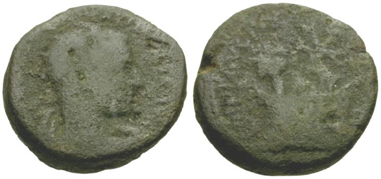 |  Trajan Decius (AD 249-251). Samaria. Caesarea Maritima Æ23 / Altar |