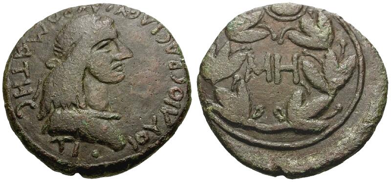 | Bosporian Kings. Sauromates I (AD 93-124) Æ27 / Wreath |