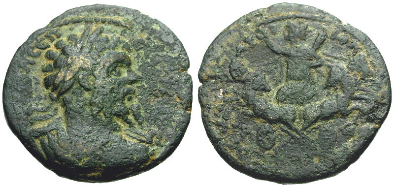 | Septimius Severus (AD 193-211). Arabia. Decapolis. Medaba Æ29 / Helios in Quadriga |