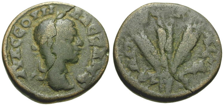 |  Severus Alexander (AD 222-235). Cappadocia. Caesarea Æ20 / Three Grain Ears |