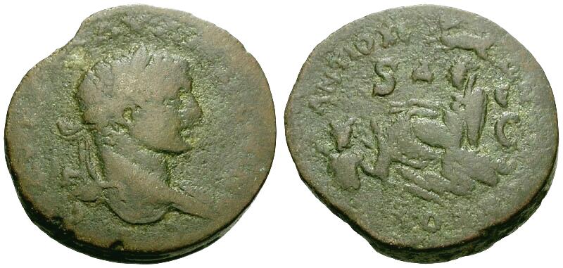 Obverse: AVT KAI M AV ANTΩNINOC C, laureate head right