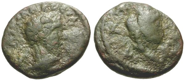 |  Macrinus (AD 217-218). Mesopotamia. Nisibis Æ17 / Tyche |