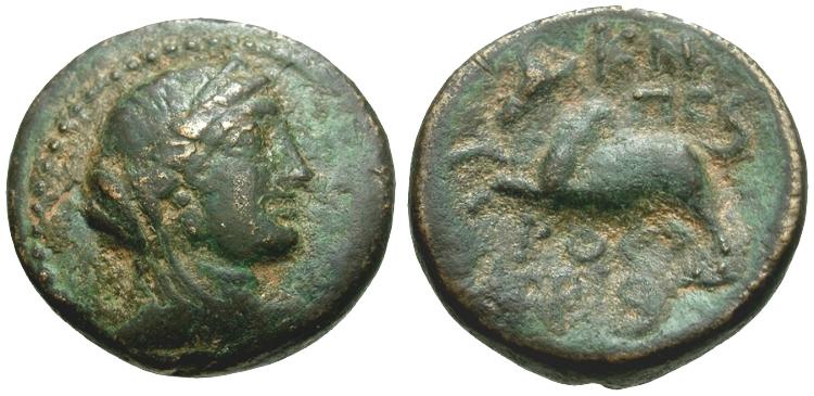 Reverse: KN / ΠC, humped bull leaping left, POЄ / MP (date) in exergue