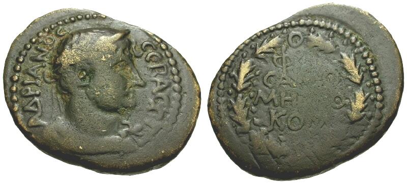 |  Hadrian (AD 117-138). Commagene. Samosata Æ22 / Wreath |