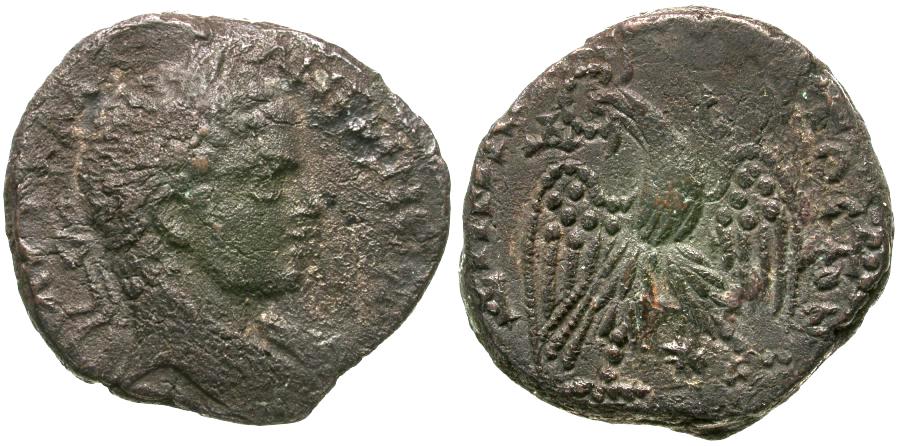 | Elagabalus (AD 218-222). Seleucis and Pieria. Antiochia ad Orontem Æ Tetradrachm / Eagle |