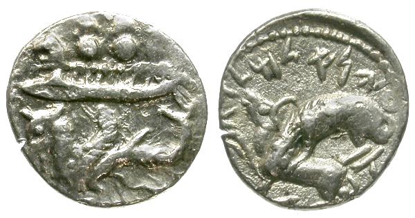| Phoenicia. Byblos. King Ainel (350-330 BC) AR 1/16 Shekel / Lion Attacking Bull |