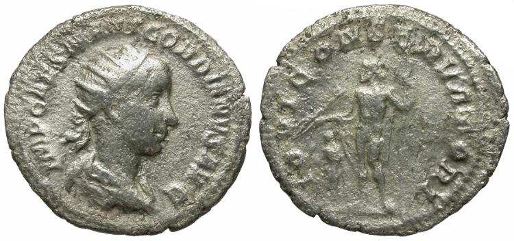Obverse: IMP CAES M ANT GORDIANVS AVG, radiate, draped and cuirassed bust right