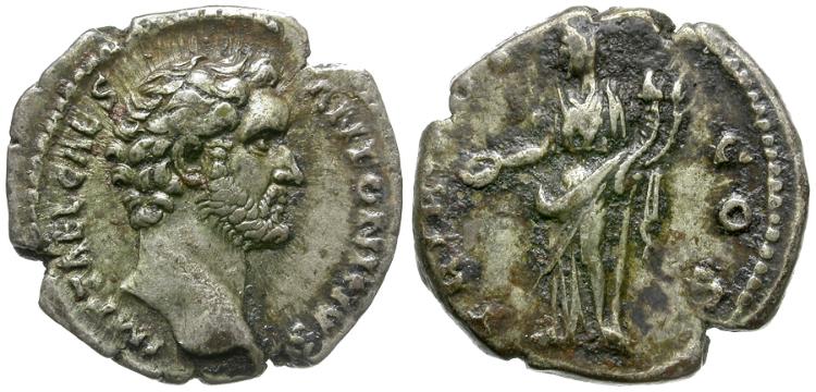 Reverse: TRIB POT COS, Concordia standing left, holding patera and double cornucopia