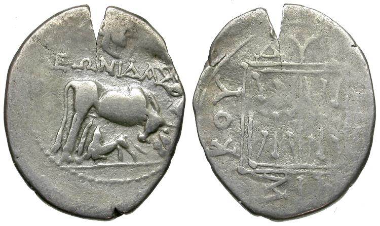 | Illyria. Dyrrhachion. Leonidas, moneyer with Phaniskos, magistrate AR Drachm / Cow and Calf |