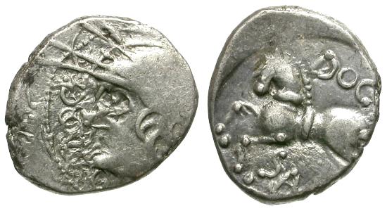 Obverse: Q•DOCI, Celticized head of Roma left