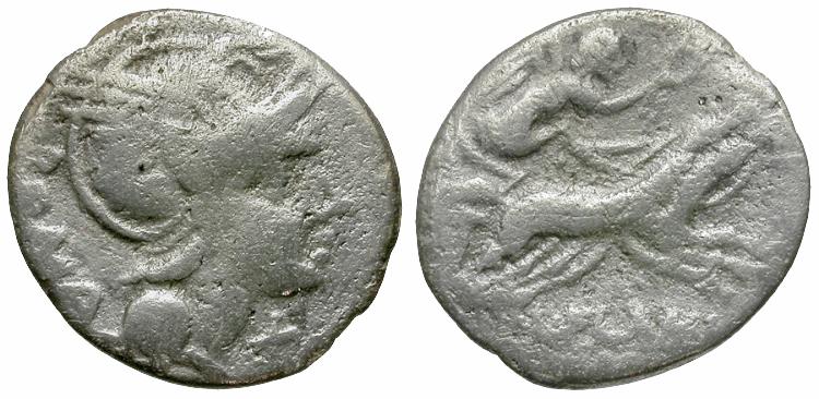 Obverse: Head of Roma right, wearing winged helmet, ROMA behind, X (mark of value) below chin
