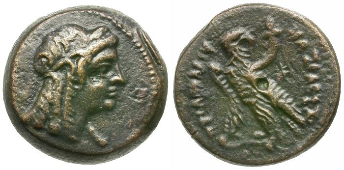 | Ptolemaic Kings of Egypt. Ptolemy VI Philometor (163-145 BC) Æ17 / Demeter |