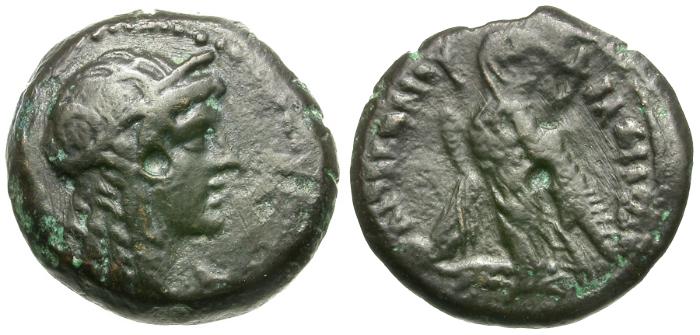 | Ptolemaic Kings of Egypt. Ptolemy VI Philometor (163-145 BC) Æ17 / Demeter |