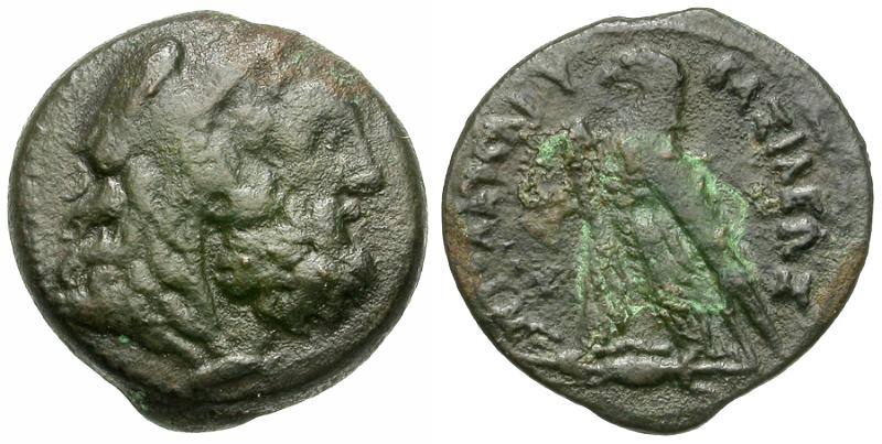 Reverse: ΒΑΣΙΛΕΩΣ ΠΤΟΛΕΜΑΙΟV, eagle standing left on thunderbolt, wings closed