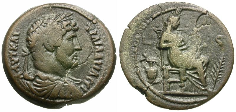 Obverse: ΑVΤ ΚΑΙ ΤΡΑΙ ΑΔΡΙΑ CЄΒ, laureate, draped and cuirassed bust right, seen from behind