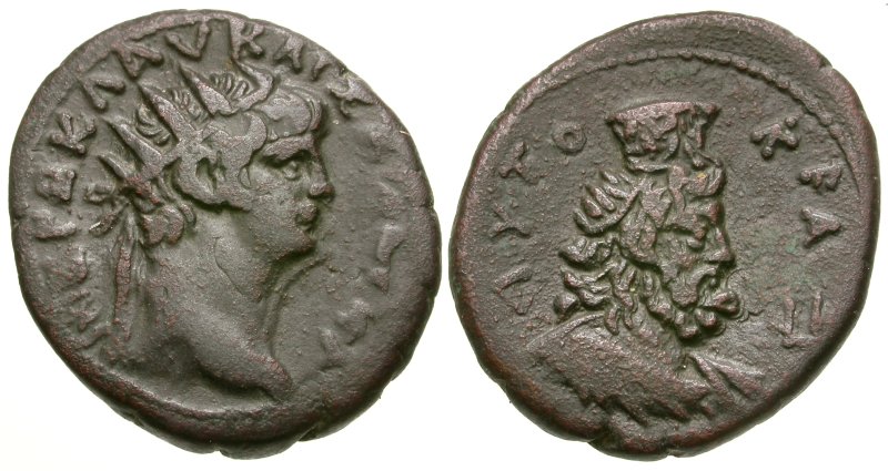 Reverse: AYTO KPA, draped bust of Sarapis right, wearing kalathos; LI[A] (date) to right