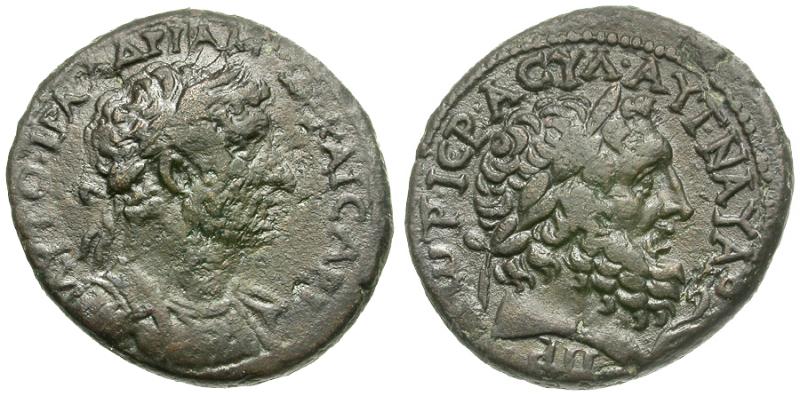 Obverse: ΑVΤΟ•ΤΡΑ ΑΔΡΙΑΝⲰ ΚΑΙϹAPI, laureate and cuirassed bust right
