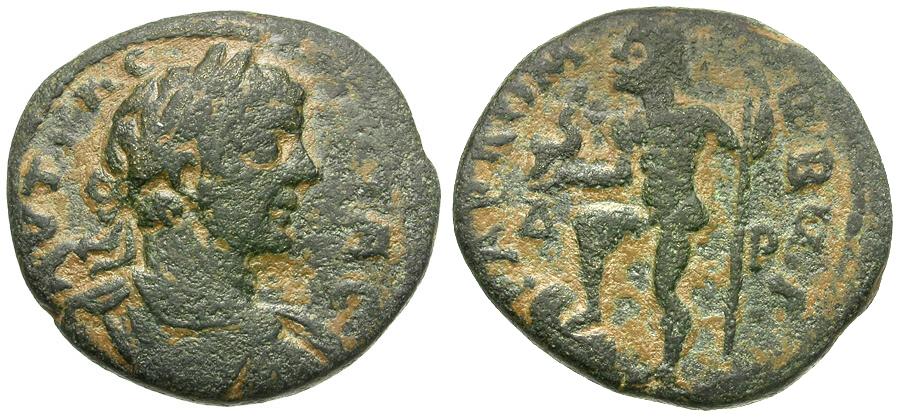 | Geta, as Caesar (AD 198-211). Arabia. Rabbathmoba Æ24 / Neptune |