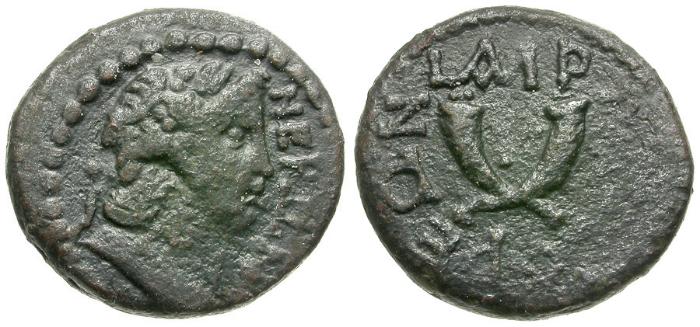 | Nero (AD 54-68). Arabia. Decapolis. Gadara Æ18 / Crossed Cornucopiae |