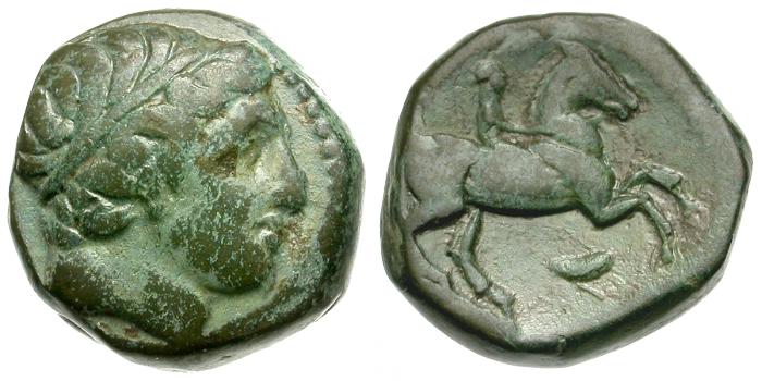 Obverse: Head of Apollo right, hair bound in tainia