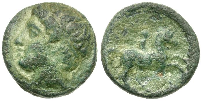 Obverse: Head of Apollo left, hair bound in tainia
