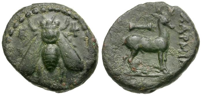 » Lot Info: Ionia. Ephesos. Charminos, magistrate Æ17 / Bee